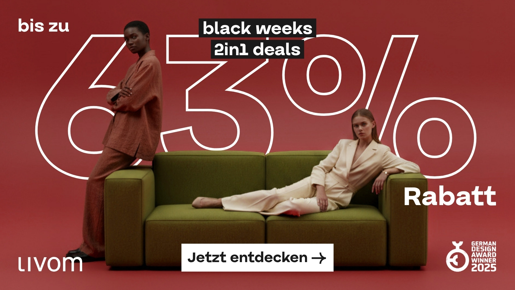 Home » Shop-Deals » Wohnen & Haushalt » Bis zu 63% Rabatt auf modulare Sofas Bis zu 63% Rabatt auf modulare Sofas frank 31. Oktober 2025 Wohnen & HaushaltWeitere Shops days 0 0 hours 0 0 minutes 0 0 seconds 0 0 Deal Score0 0 1 Zum Deal Deal Score0 Zum Deal Werbung Modular und waschbar – Sofas, die sich deinem Leben anpassen. Jetzt im Black Friday Sale bis zu 63 % Rabatt auf alle Livom Sofas. Nachhaltig, bequem und stilvoll.