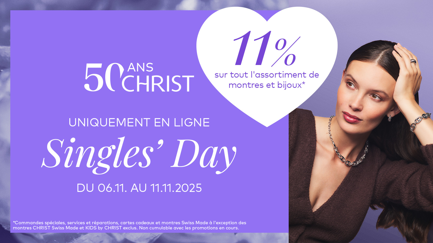 Chez CHRIST Montres et Bijoux, vous bénéficiez de 11 % de réduction sur l’ensemble de la collection de montres et de bijoux, à l’exception des marques de montres Swiss Made.
