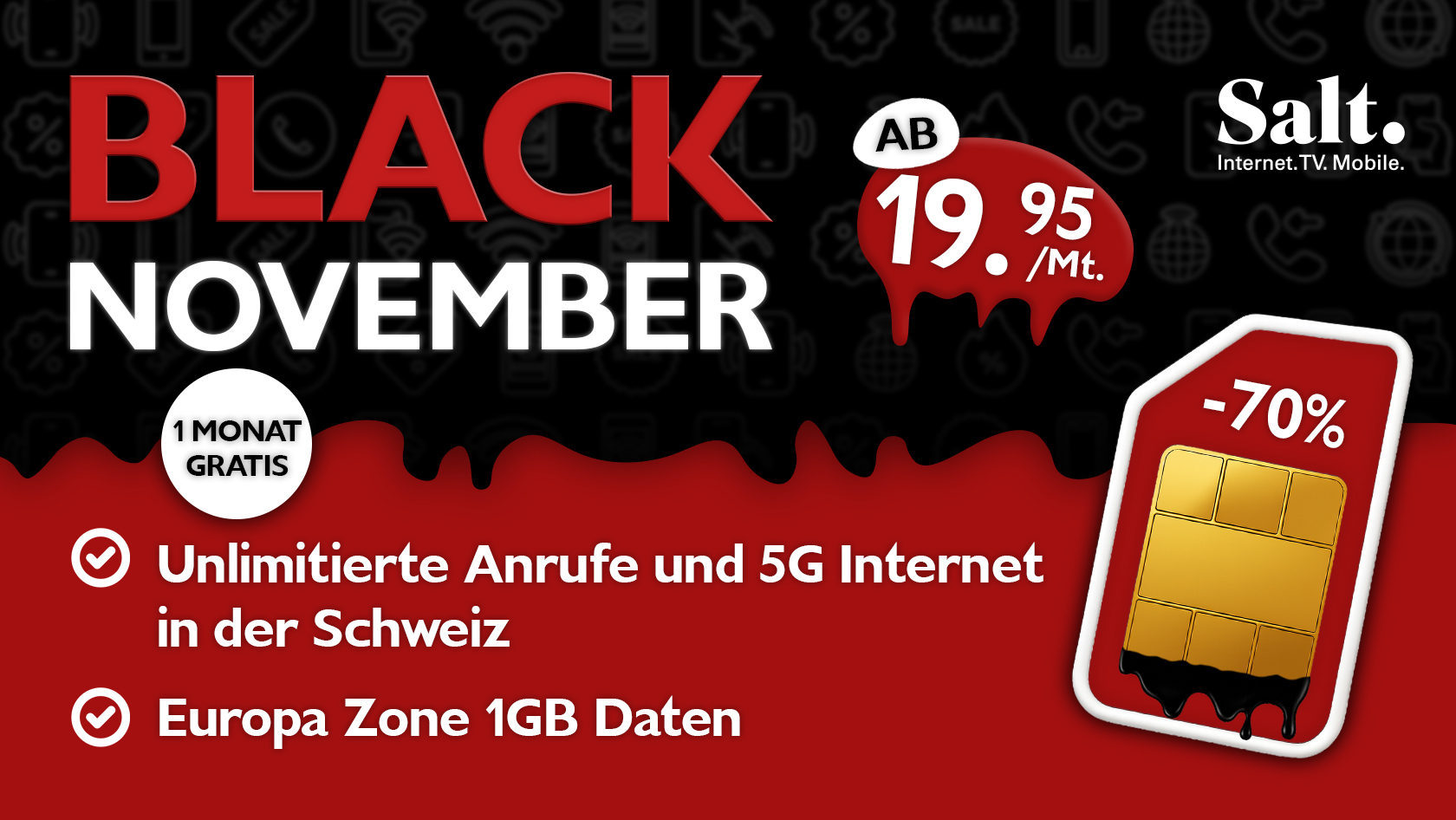 Home » Handy & Abos » -75% sur les abonnements mobiles Salt -75% sur les abonnements mobiles Salt frank 1. November 2025 Handy & Abos, Handy & Abos, Téléphones mobiles & abonnementsHandy-Abovergleich.ch, Salt days 0 0 hours 0 0 minutes 0 0 seconds 0 0 Deal Score0 0 Voir l'offre Deal Score0 Voir l'offre Werbung Jusqu’à -75% de rabais sur les abonnements de téléphonie mobile Salt, carte SIM gratuite incluse. Salt Europe Data en exclusivité pour CHF 24.95/mois