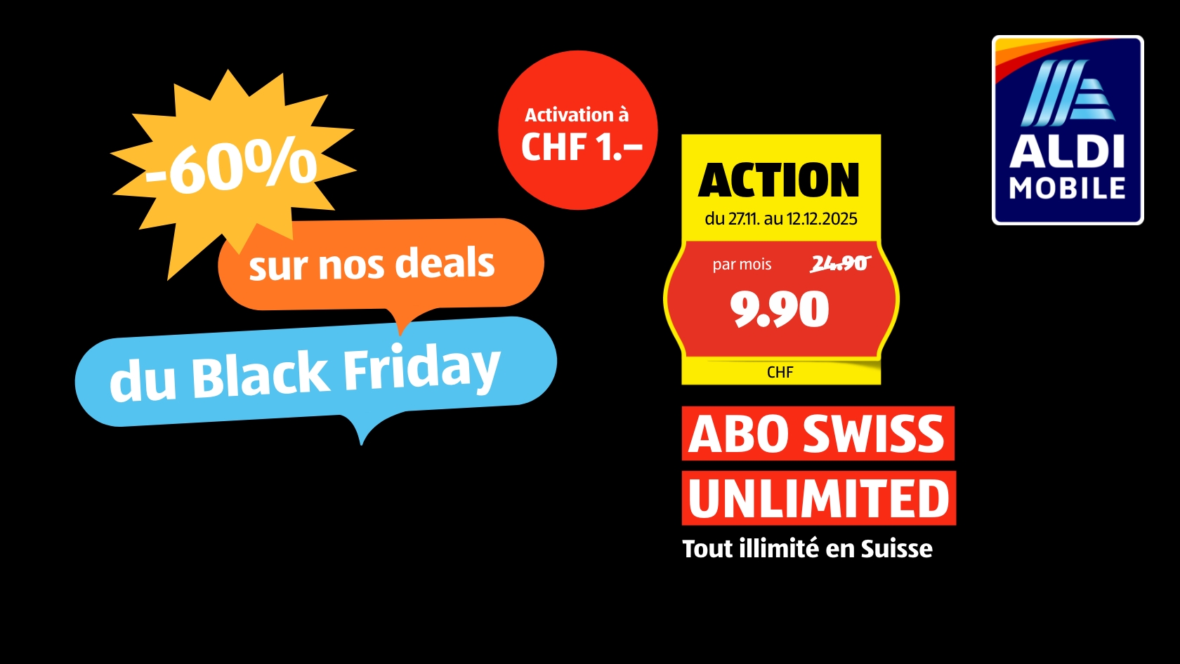 Home » Handy & Abos » Jusqu’à -60% sur les abos mobile Jusqu’à -60% sur les abos mobile frank 22. November 2025 Handy & Abos, Téléphones mobiles & abonnementsALDI Suisse Mobile days 0 0 hours 0 0 minutes 0 0 seconds 0 0 Deal Score0 0 1 Voir l'offre Deal Score0 Voir l'offre Werbung Abo Swiss Unlimited pour CHF 9.90 au lieu de CHF 24.90 – tout illimité en CH – frais d’activation CHF 1.- au lieu de CHF 49.-