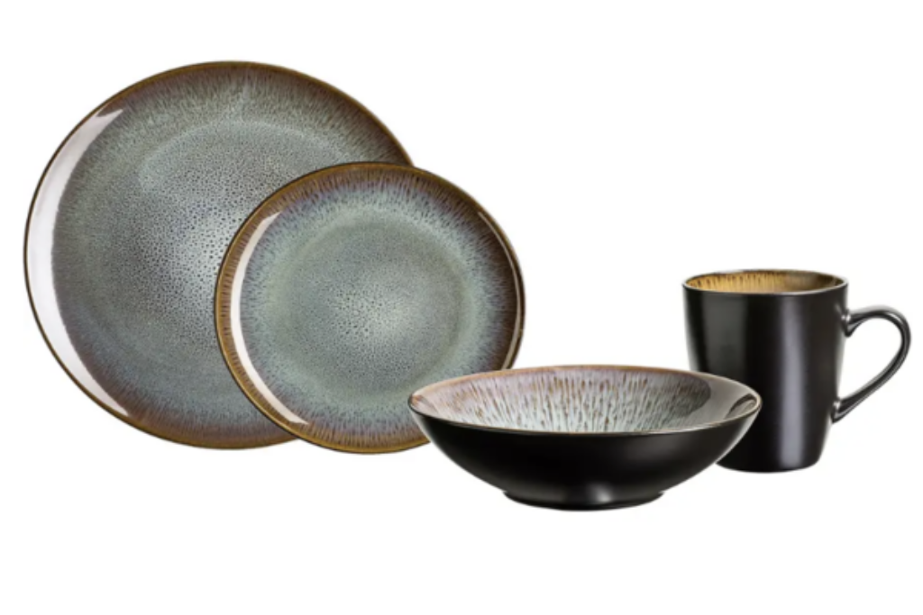 Service de vaisselle 16 pièces en noir/gris/vert